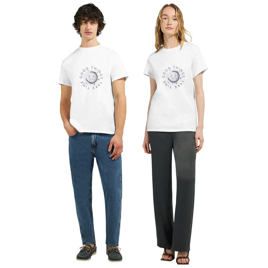 Good Things Take Time Unisex Heavyweight Cotton T-Shirt – Classic White Tee